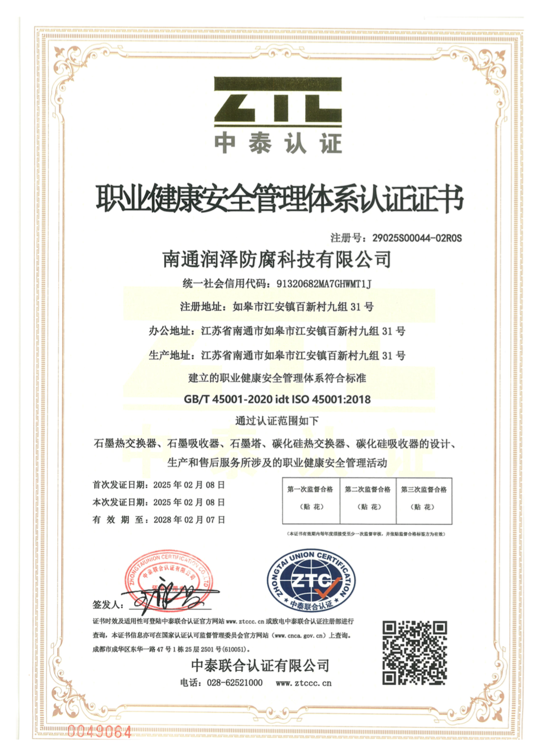 作為一家專注于防腐設(shè)備研發(fā)、生產(chǎn)與服務(wù)的國家高新技術(shù)企業(yè),潤澤防腐科技始終將質(zhì)量管理視為生命線。通過ISO 9001認(rèn)證,公司進(jìn)一步優(yōu)化了從原材料采購、生產(chǎn)制造到客戶服務(wù)的全流程標(biāo)準(zhǔn)化管理,確保產(chǎn)品性能穩(wěn)定可靠,滿足化工、醫(yī)藥、農(nóng)藥等高端領(lǐng)域客戶的嚴(yán)苛需求。